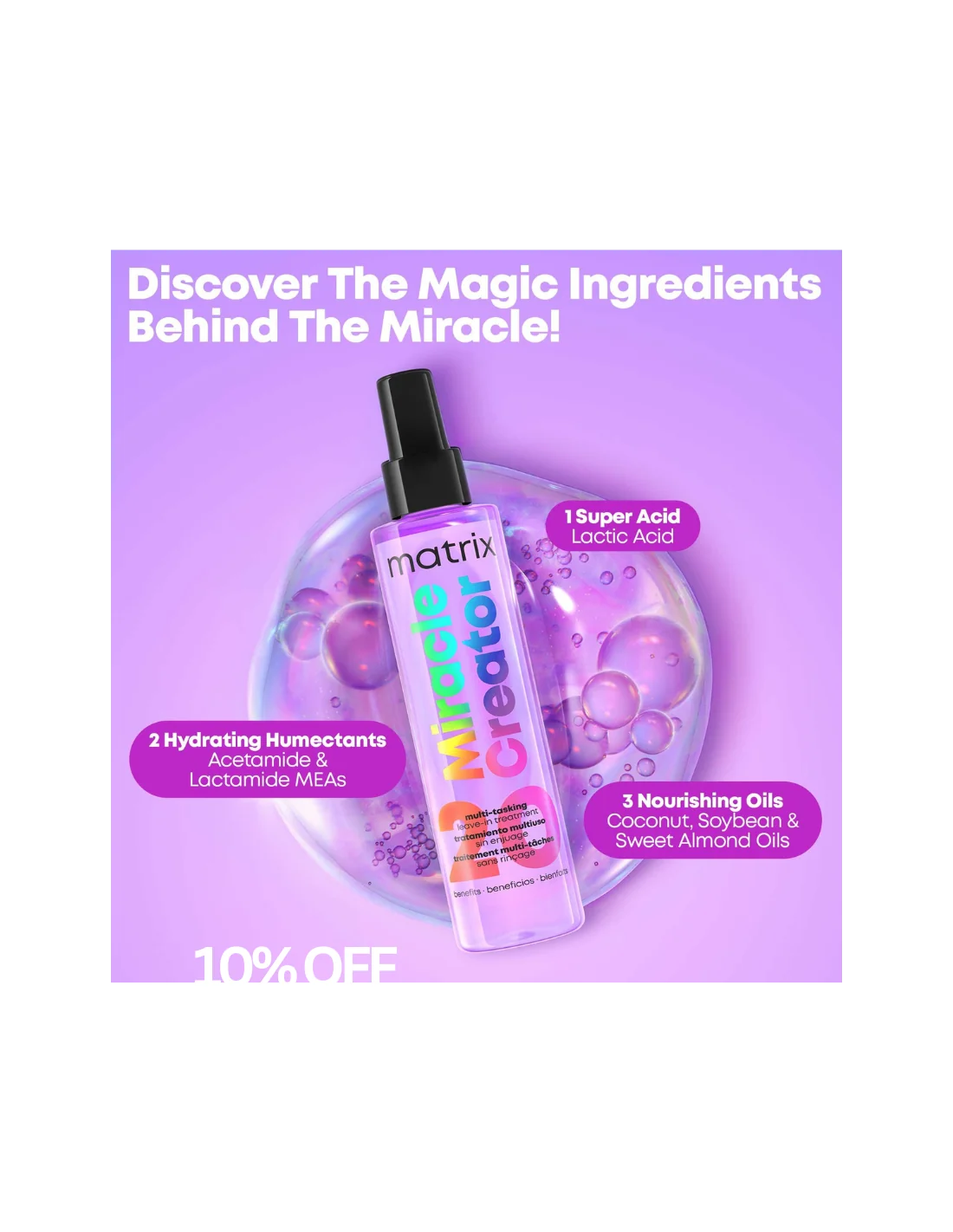 Matrix Miracle Creator 20 funkcijų purškiklis. Priemonė, kuri maitina, atkuria ir apsaugo plaukus tik per 60 sekundžių. 20 funkcijų, kurias atlieka ši priemonė: